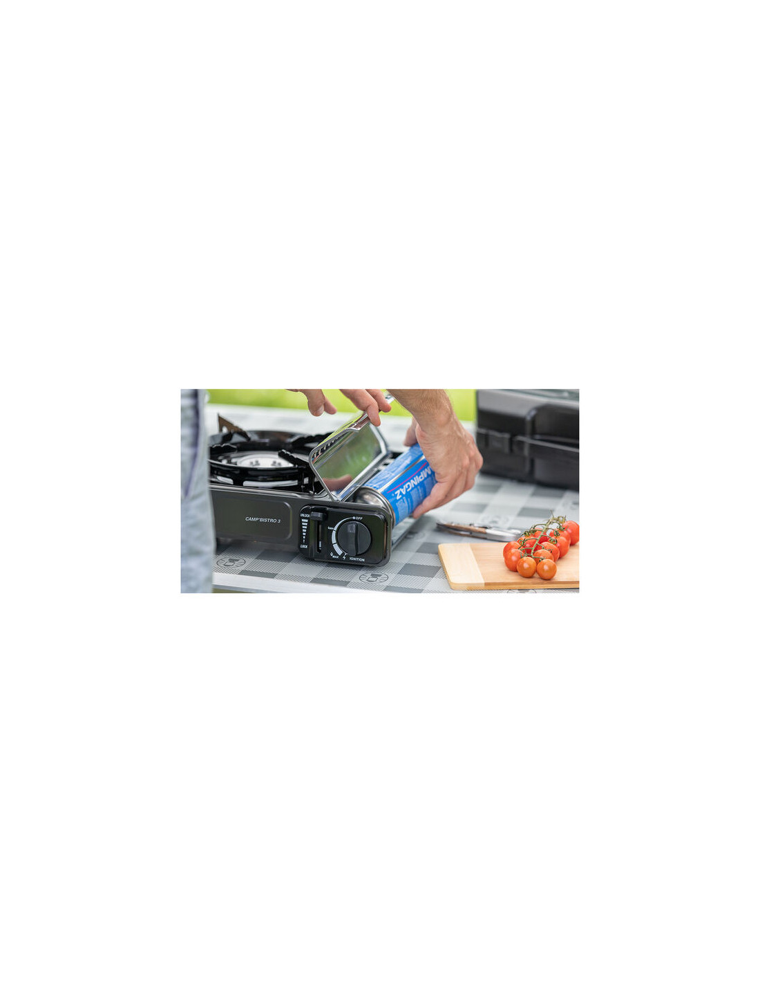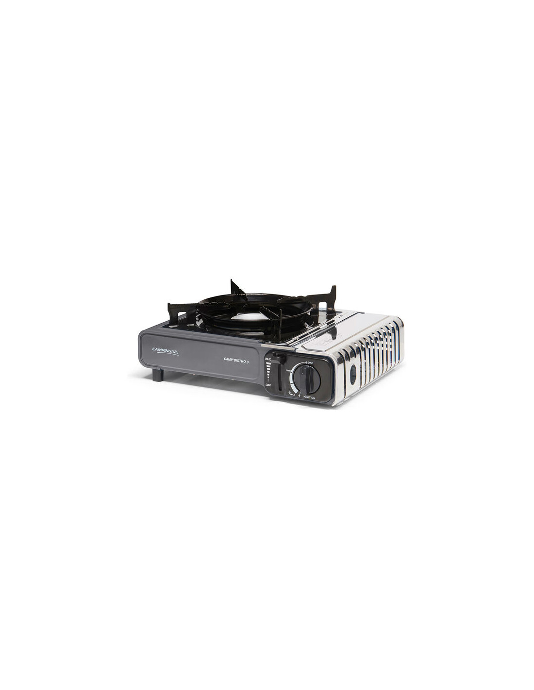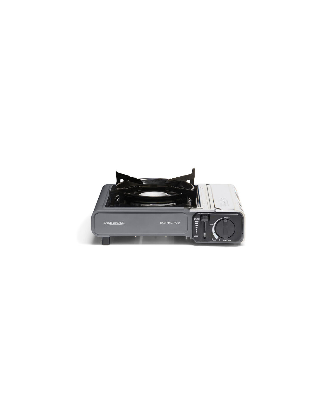 La darrera versió de la història d'èxit de Campingaz®, el Camp'Bistro 3, amb 2 sistemes de seguretat integrats, una tapa de cartutx d'acer inoxidable i un suport de cassola millorat, que garanteixen l'estabilitat i l'ús segur del fogonet.