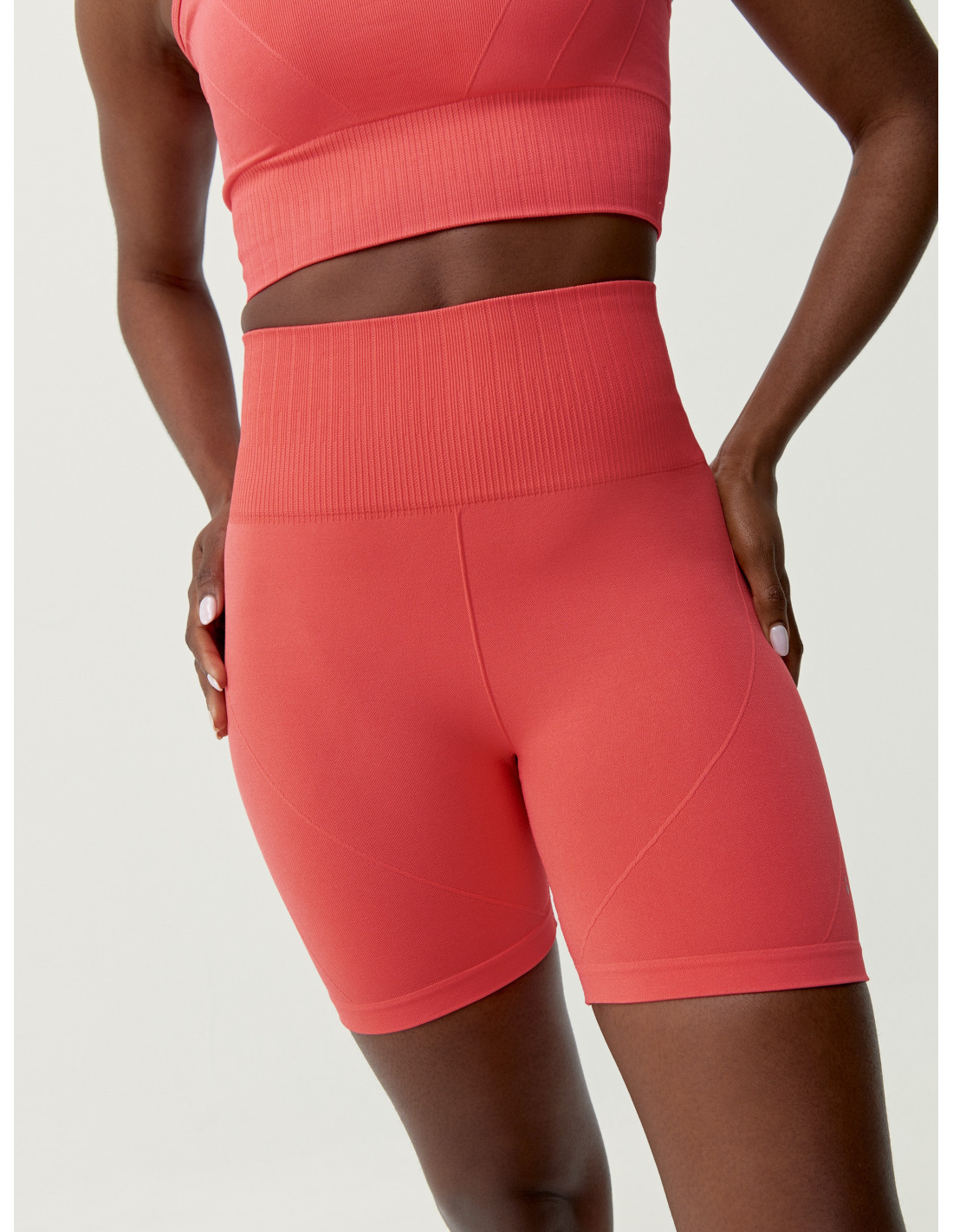 Short amb teixit Fit_Tech Disseny emmotllador. Amb tecnologia 3D. Cintura alta i doble, per a més ajustament. Nervis frontals per afavorir la figura. Punt doble a zones estratègiques.