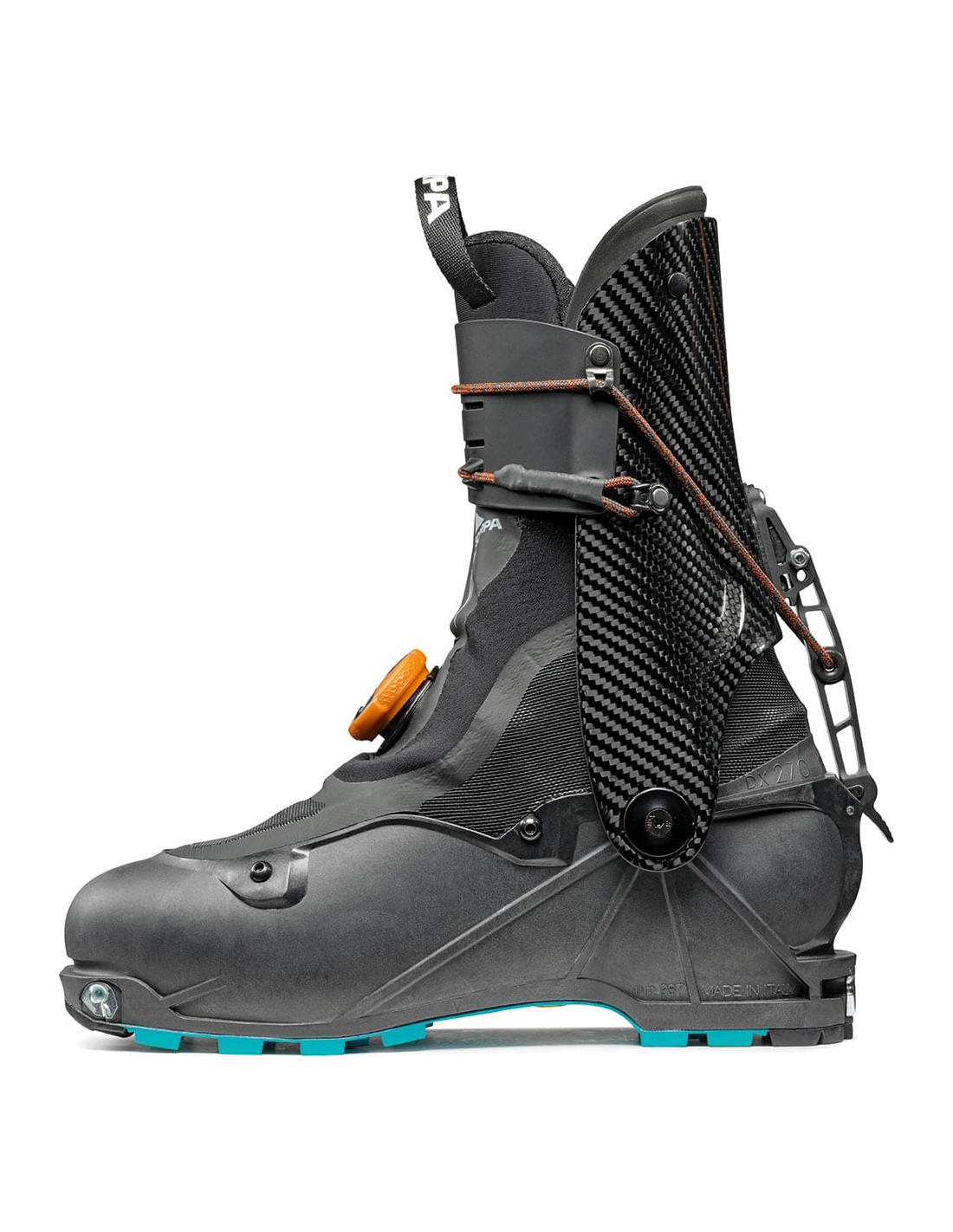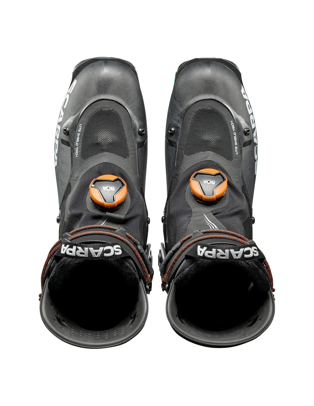 - Tancament: Dyneema Cord + BOA® Fit System. La canya es tanca mitjançant un cordó de Dyneema® d',acció simple que s',interconnecta amb el mecanisme d',esquí/caminada per accelerar les transicions. El sistema d',ajust BOA® us permet trobar l',ajust perfecte amb el tancament flotant exclusiu del sistema d',ajust BOA® de Scarpa, que proporciona ajustaments precisos i segurs sense punts de pressió.