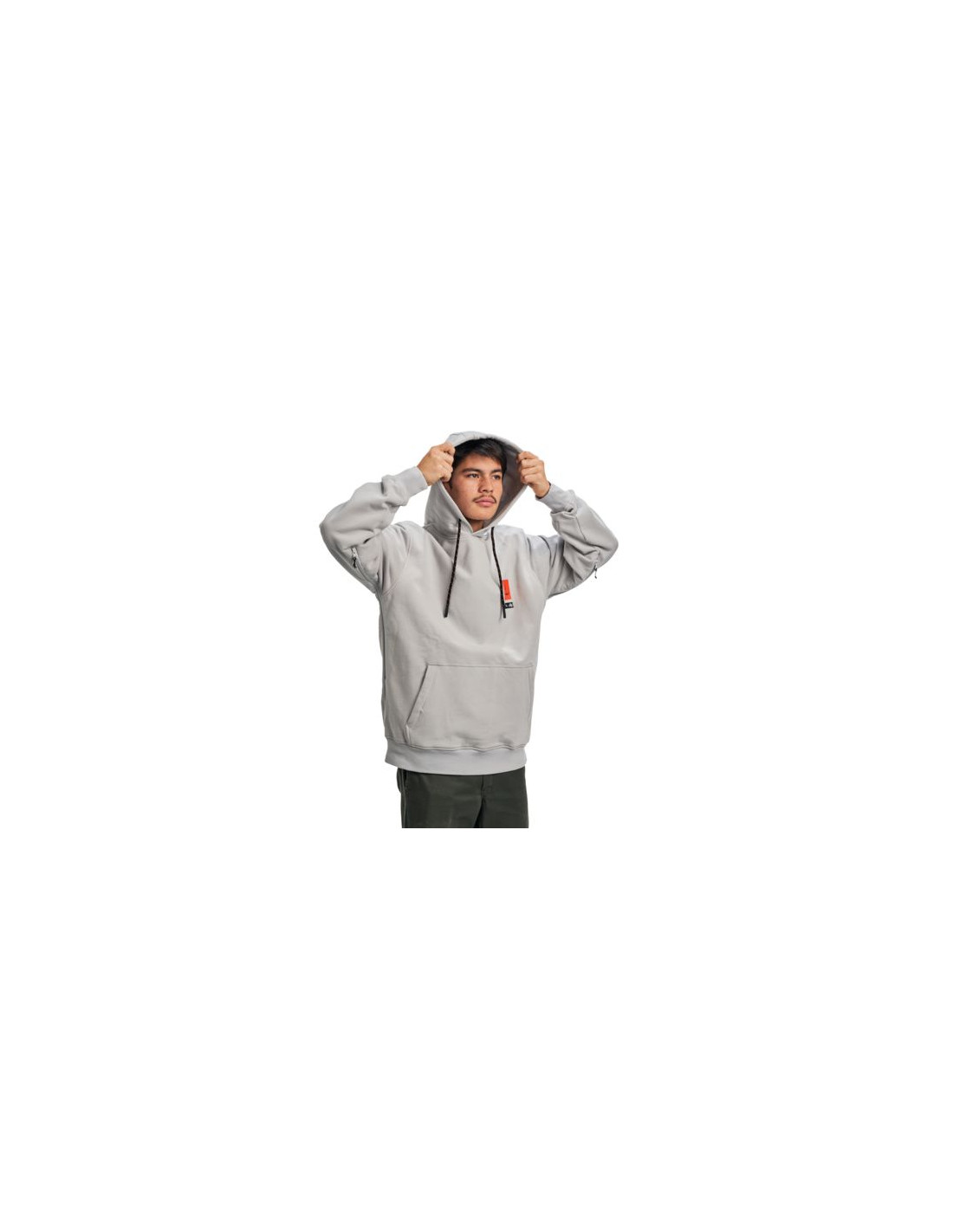 Un jersei d'equitació legítim. La dessuadora amb caputxa a prova de neu desplega un folre súper elàstic a prova de vent per proporcionar un refugi útil dels elements i tancaments de cremallera doble per evitar que les butxaques dels cangurs s'omplin de neu. Les cremalleres amb folre de malla us permeten refrescar-vos quan feu excursions.