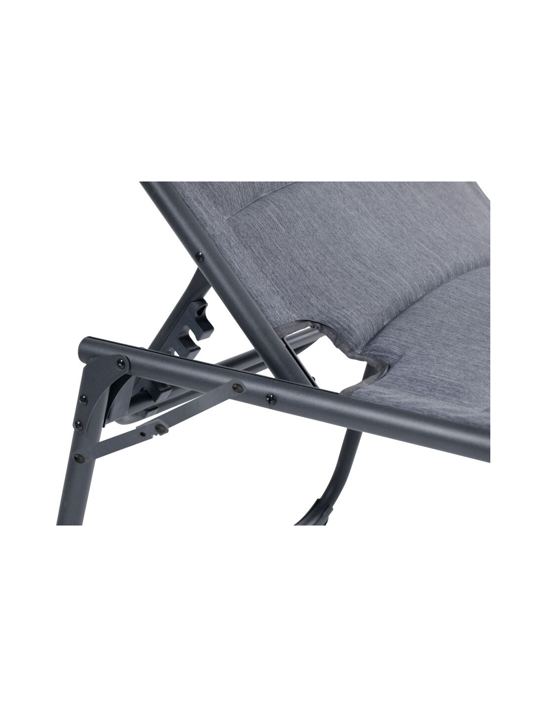 Seient i respatller encoixinat de polièster amb ajust de 5 posicions per a una comoditat òptima al saló, amb una càrrega màxima de 150 kg gràcies al marc d'alumini amb recobriment de pols lleuger i d'alta resistència que inclou un coixí cervical integrat i desmuntable.