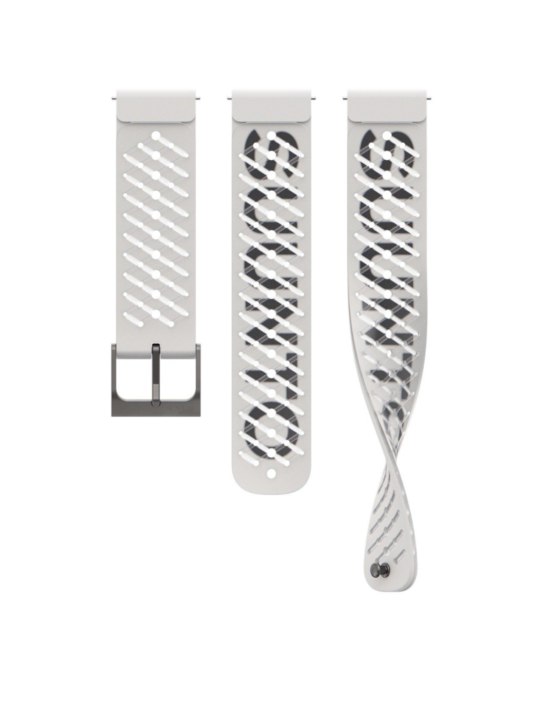 Sigues més atrevit amb aquesta corretja de rellotge esportiva de la marca Suunto. Aquesta corretja està feta de silicona de doble capa amb «SUUNT» imprès entre les capes perquè mai no es desgasti la impressió. La corretja és còmoda fins i tot per a esports humits i suats, i suposa un element atrevit que destacarà a la línia de sortida. El paquet inclou dues corretges de talles diferents fàcils d'intercanviar gràcies als passadors corbats de tancament ràpid. La corretja ve amb un pràctic tancament de clip metàl·lic que la subjecta fermament.