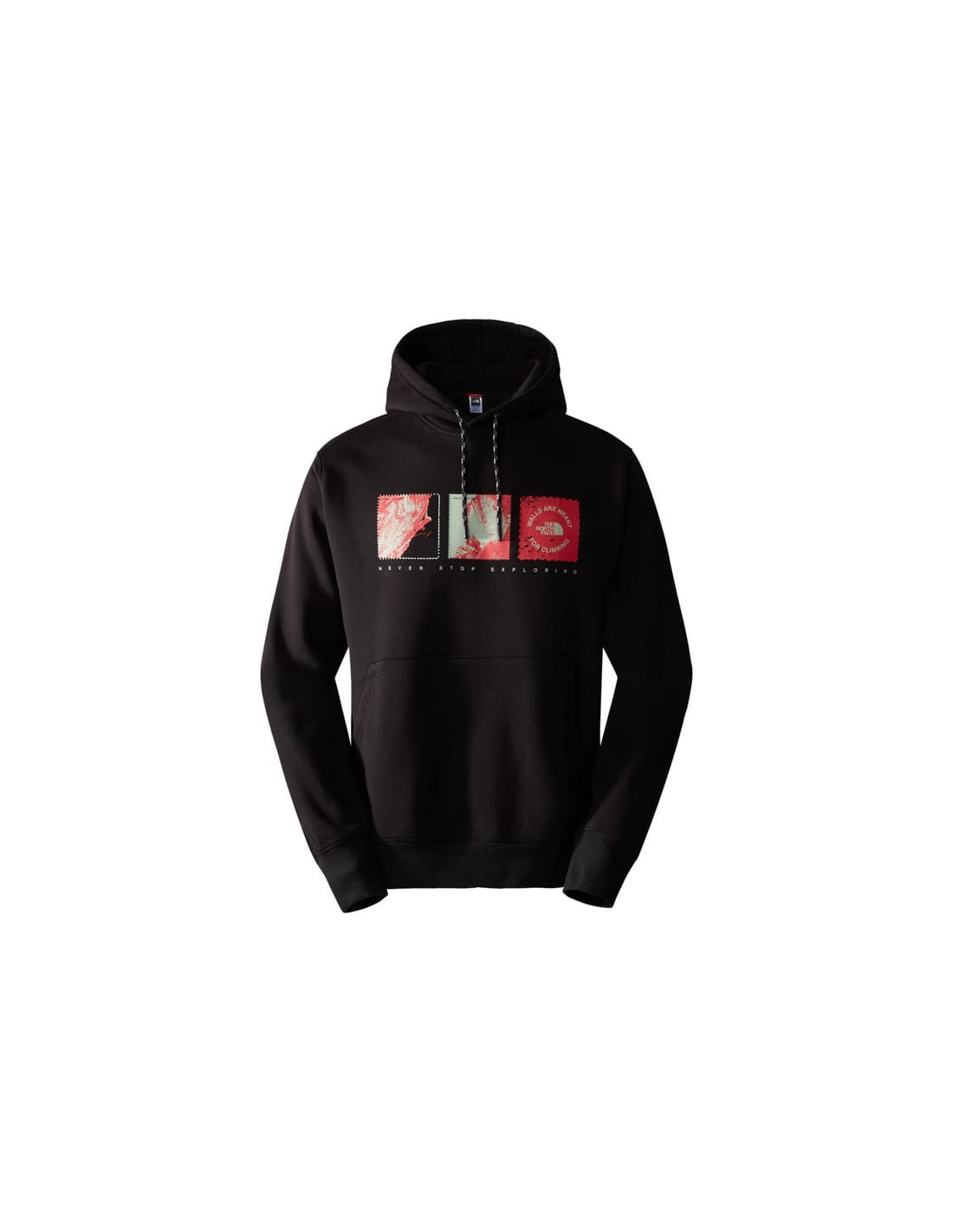 La caputxa gràfica a l’aire lliure de la cara nord està dissenyada per al desgast de muntanya. Compta amb una caputxa regulable i una impressió gràfica, sent molt suau i durador.