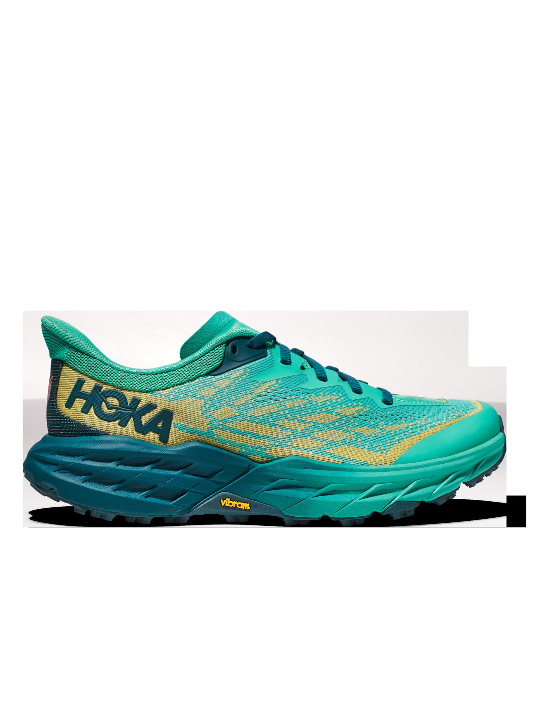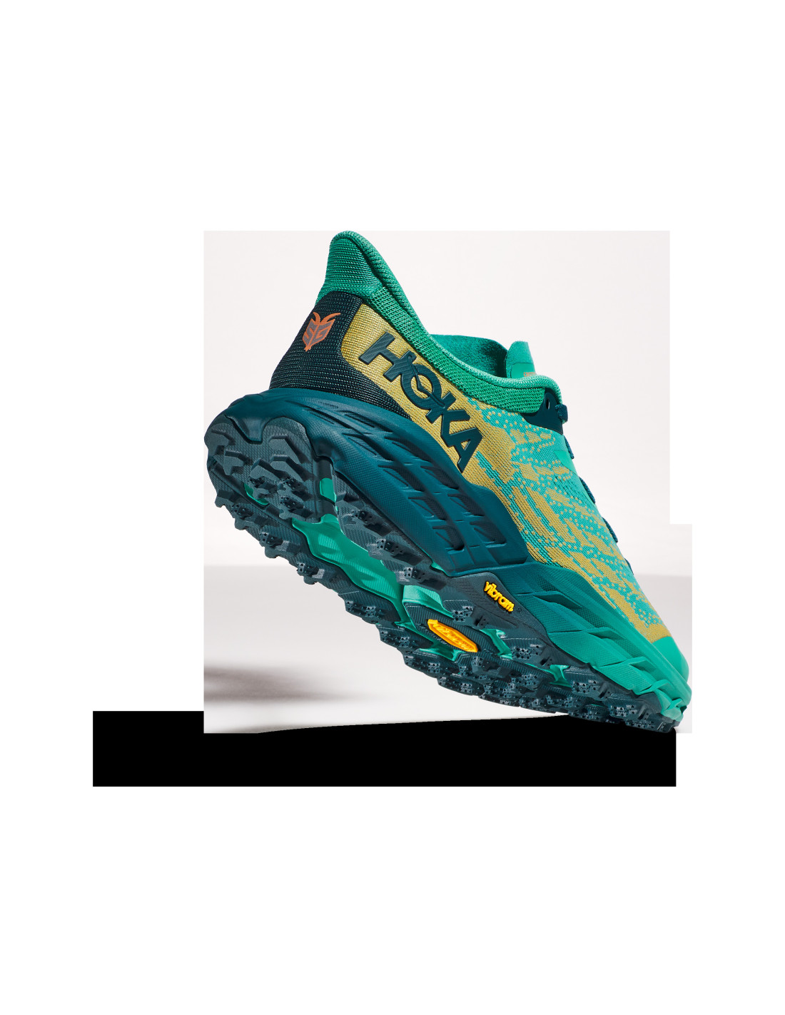 Un cavall de batalla dissenyat per a senders tècnics, el Speedgoat torna com una nova sabata de la sola exterior als cordons. Aquesta bèstia de senders s'actualitza amb Vibram® Megagrip amb Traction Lug per millorar l'adherència i la potència de frenada en sòls solts. Amb 21 grams més lleugera, la cinquena edició Speedgoat, molt més adherent, presenta moltes millores per millorar el rendiment. La reducció de pes també prové de menys superposicions, cosa que ens ajuda a treballar cap a una construcció més sostenible. Envoltant el dit del peu i l'avantpeu, un component tèxtil dinàmic ofereix una flexibilitat i una comoditat excepcionals durant el descens del peu, a més d'adaptar-se a la possible inflor dels peus, una característica que es veu a Mafate Speed 3, Evo Mafate 2 i Evo Speedgoat. Els refinaments de la llengua afegeixen encara més la sensació de confort millorat a la part superior del peu, adjacent al turmell on es pot produir la fricció. El seu compost d'entresola és encara més lleuger que abans, oferint la característica suau de HOKA sense reduir l'alçada de la pila. Això, combinat amb una malla de doble capa de jacquard, garanteix que la nostra darrera superestrella de trail inspiri confiança en qualsevol terreny.