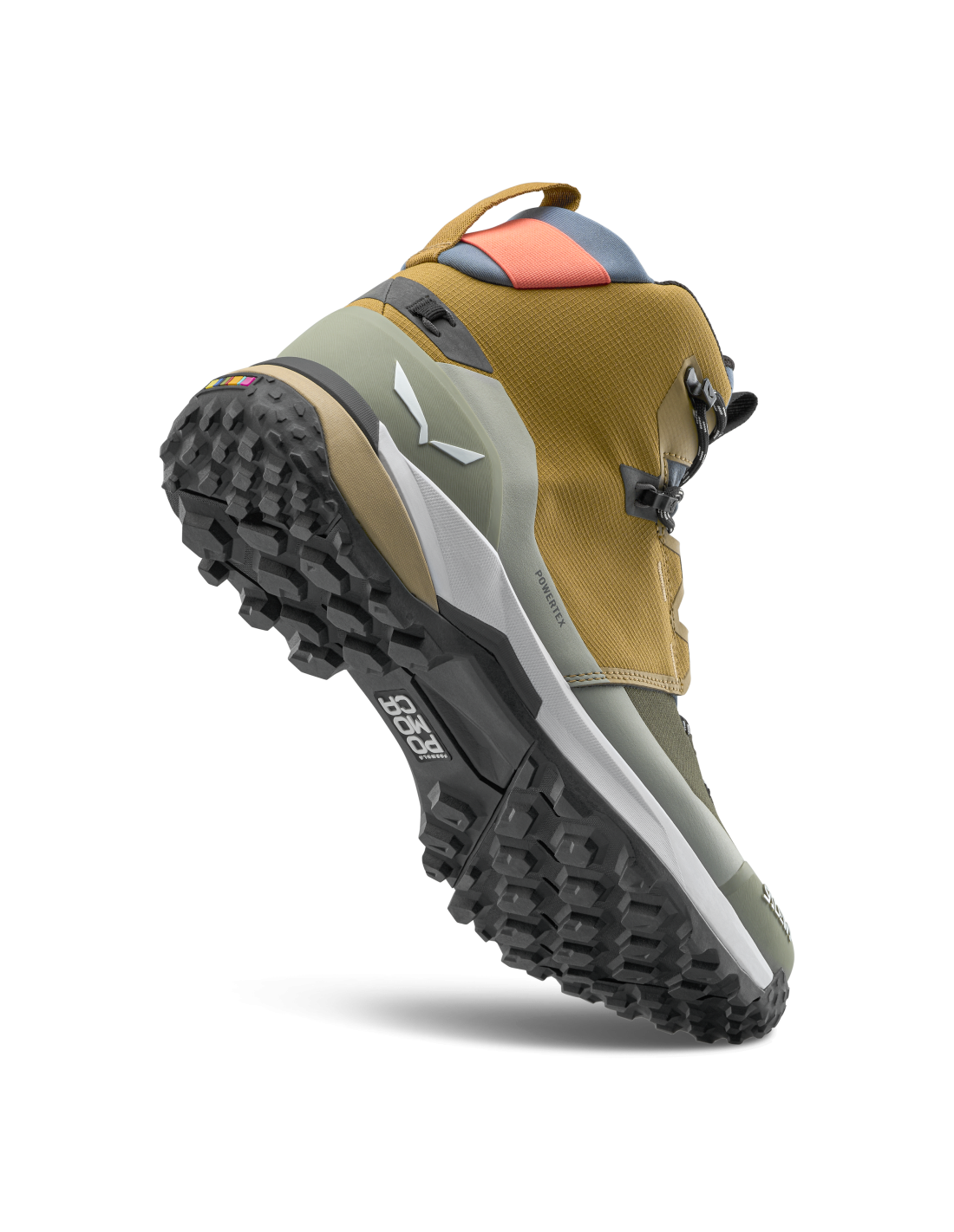 Les Puez Mid Powertex presenten una sola exterior Pomoca™ Alpine Trekker per oferir adherència i tracció en terreny tècnic. Al cor de la seva estructura, integrat a la plantilla, es troba el nou Salewa Edging Plate II, un marc termoplàstic especial que recorre tot el llarg de la bota i ofereix una combinació de flexió i rebot optimitzats per a una comoditat duradora en caminades amb certs nivells de rigidesa i flexió a la part davantera del peu, i el taló segons la rigidesa, a més d',una major estabilitat. A més, el provat sistema Salewa 3F amb cables de Kevlar® garanteix un ajust ferm al turmell i una estabilitat envoltant a la part mitjana del peu. Això és reforçat pel sistema de cordons d',escalada que arriba fins a la puntera.