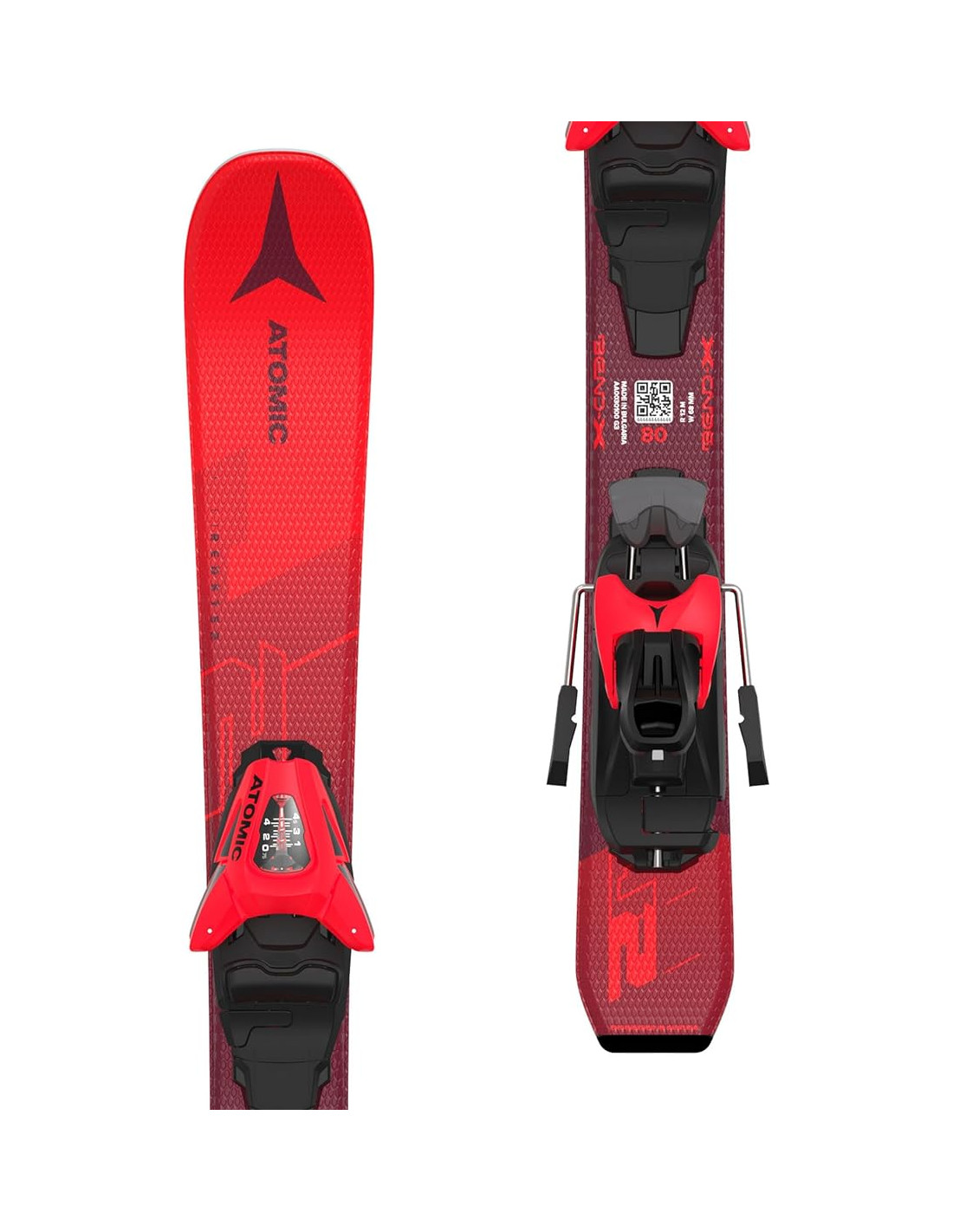 Amb l',Atomic Redster RJ 70-90, joves velocistes d',aproximadament 3 a 5 anys es poden divertir imitant els seus herois de la Copa del Món. El Redster RJ 70-90 compta amb la tecnologia Bend-X, una zona de flexió suau a l',àrea de la fixació perquè fins i tot les cames petites puguin doblegar fàcilment l',esquí i romandre en contacte total amb la neu. A més, amb un Race Rocker i Dura Cap, girar és molt fàcil. El Redster RJ 70-90 està decorat a Rojo Redster, perquè els joves esquiadors puguin lluir com els professionals.
